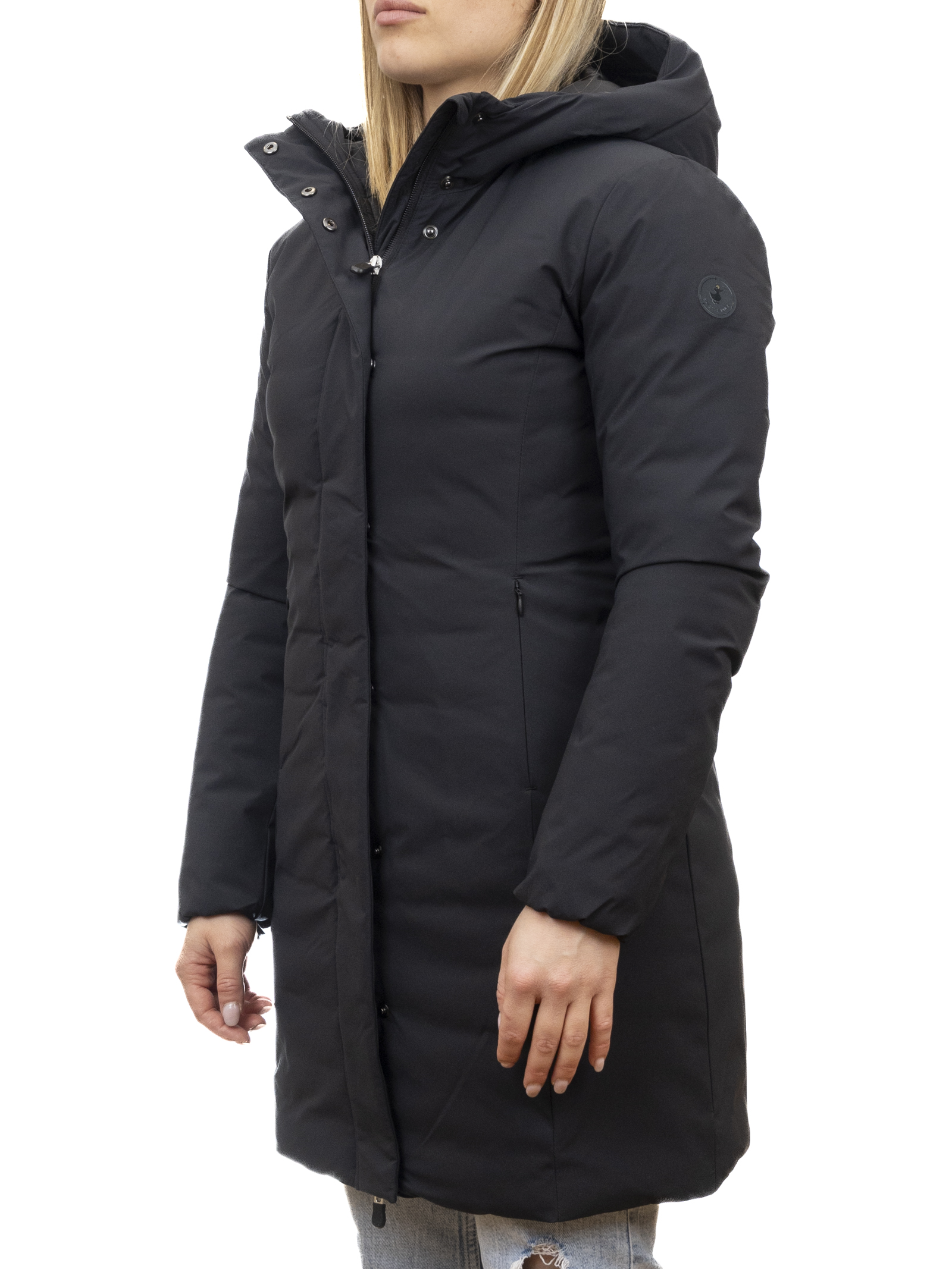 Il parka lungo Save The Duck da donna in nero è la scelta perfetta per chi cerca eleganza, comfort e sostenibilità.