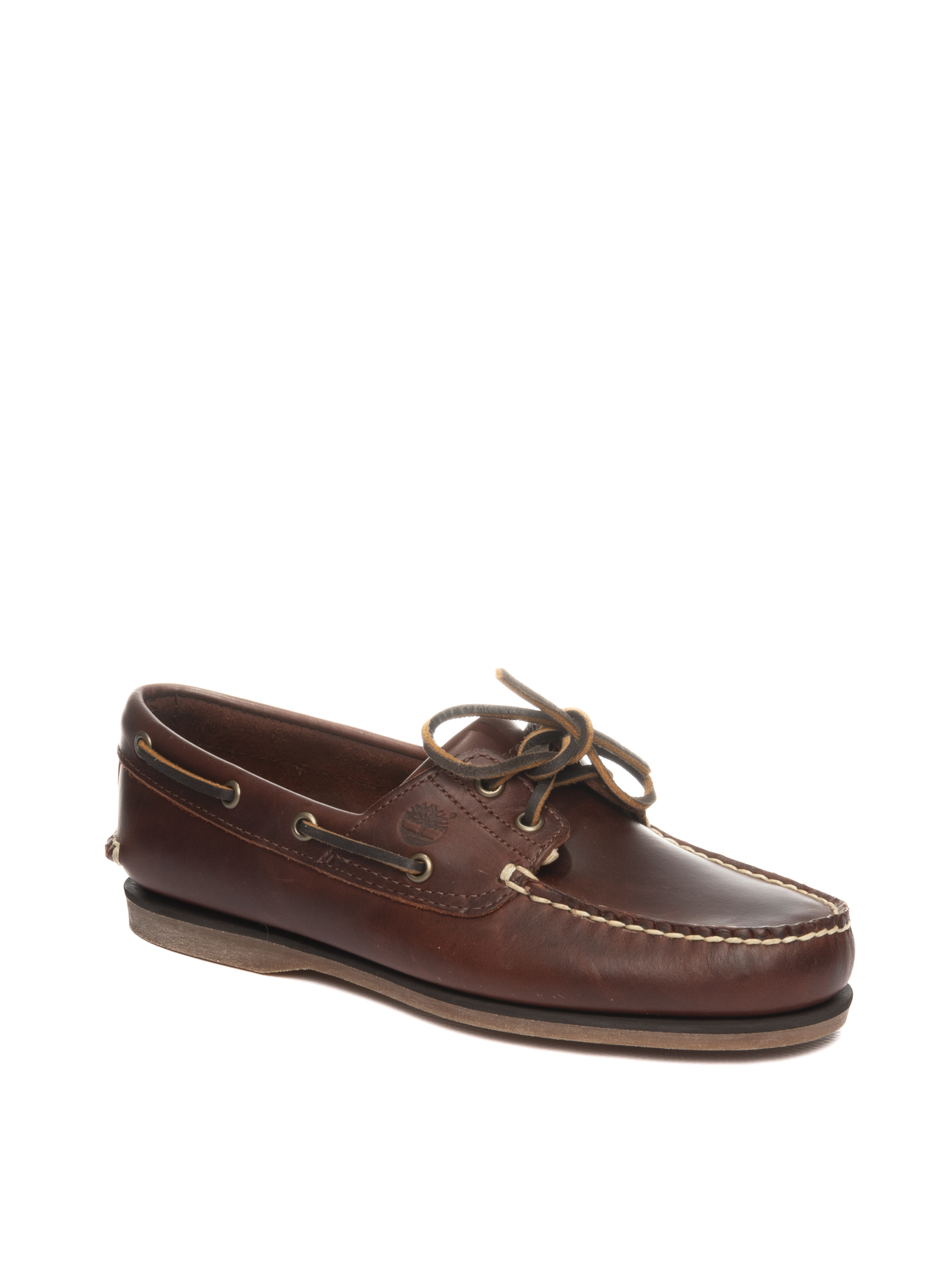Mocassino barca in pelle. Chiusura con lacci. Cucitura in vista. Suola in gomma. 2 asole.