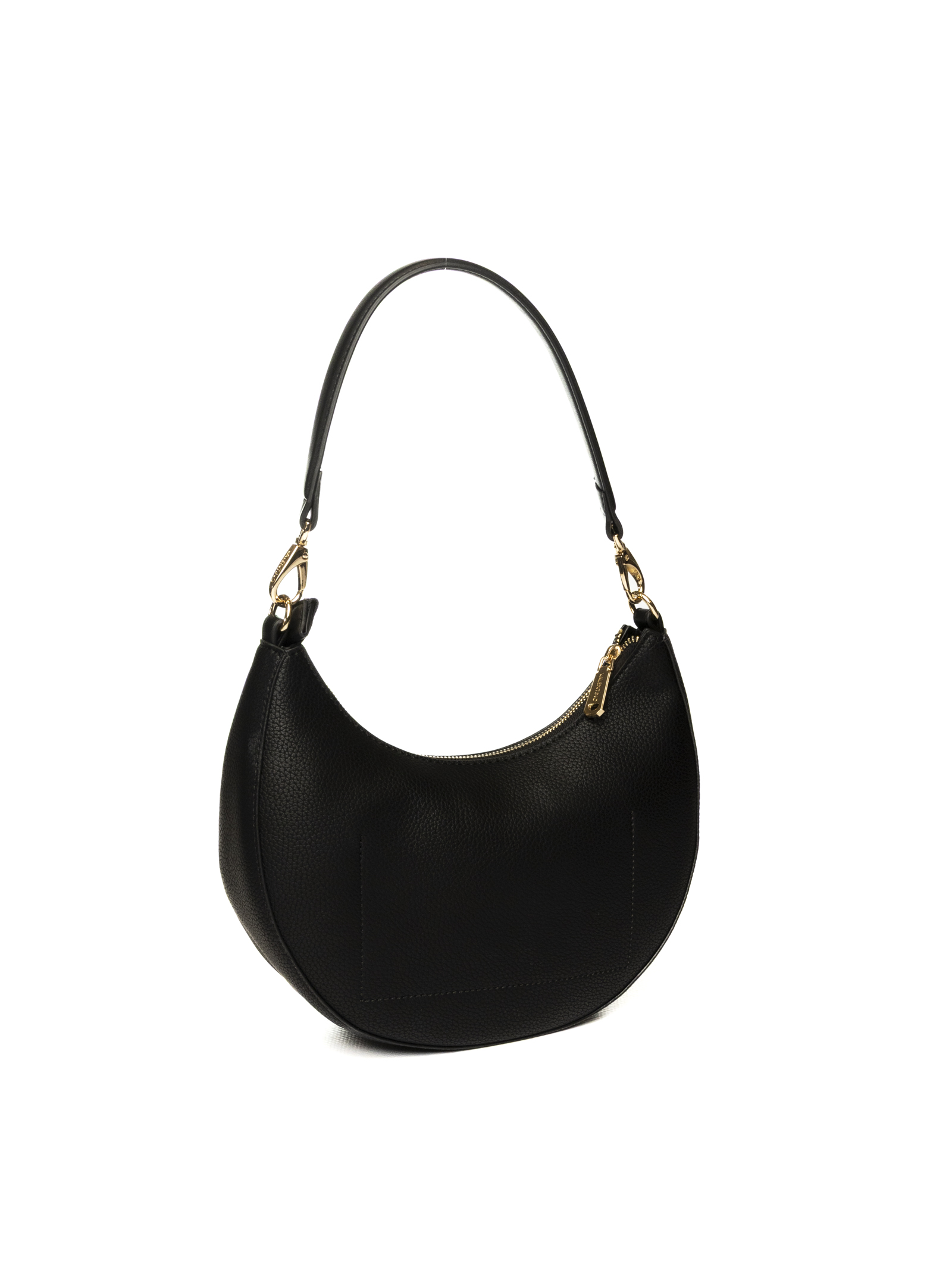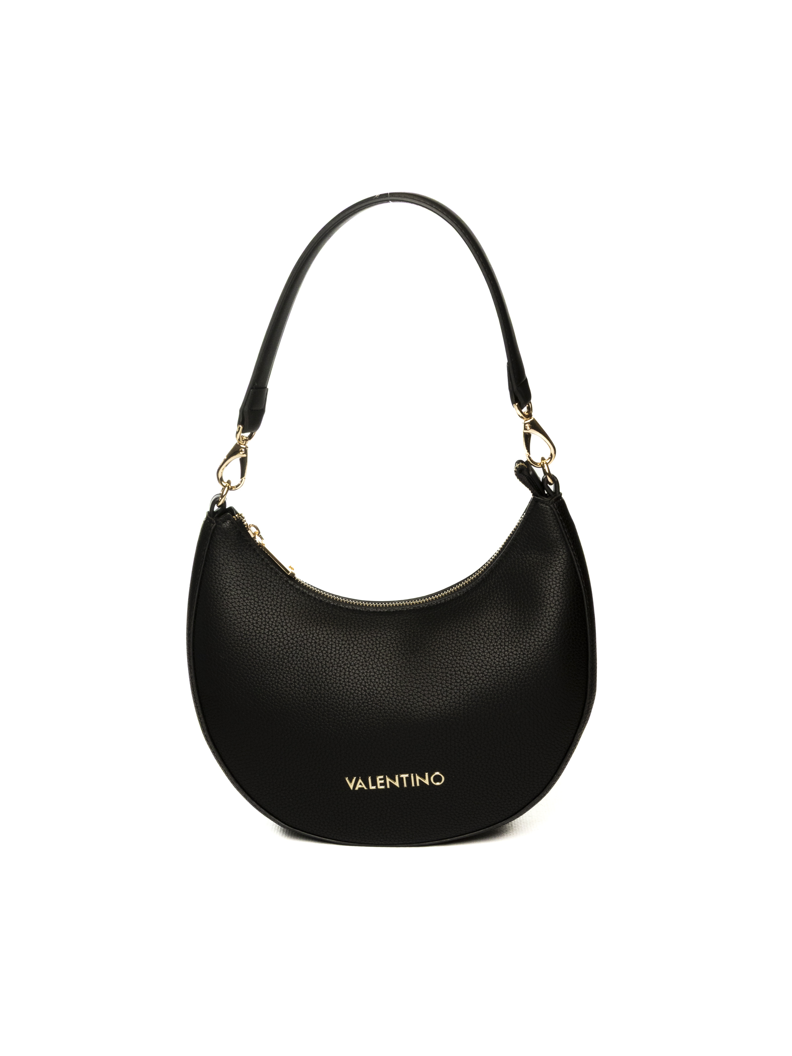 Con un design elegante e contemporaneo, la borsa a spalla a mezzaluna Valentino by Mario Valentino in pelle martellata nera rappresenta il perfetto equilibrio tra stile e praticità.