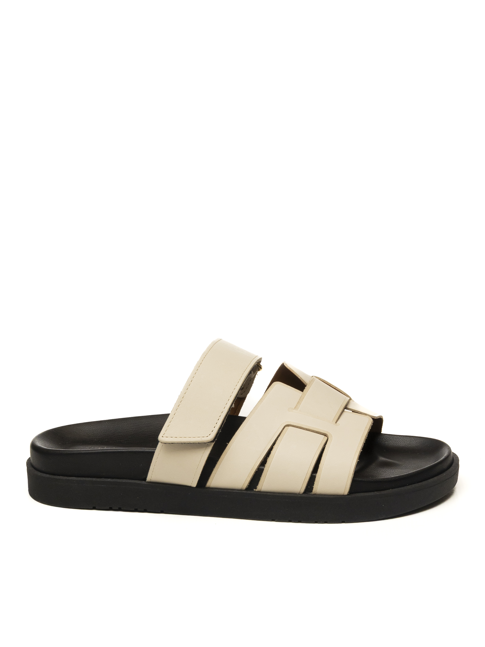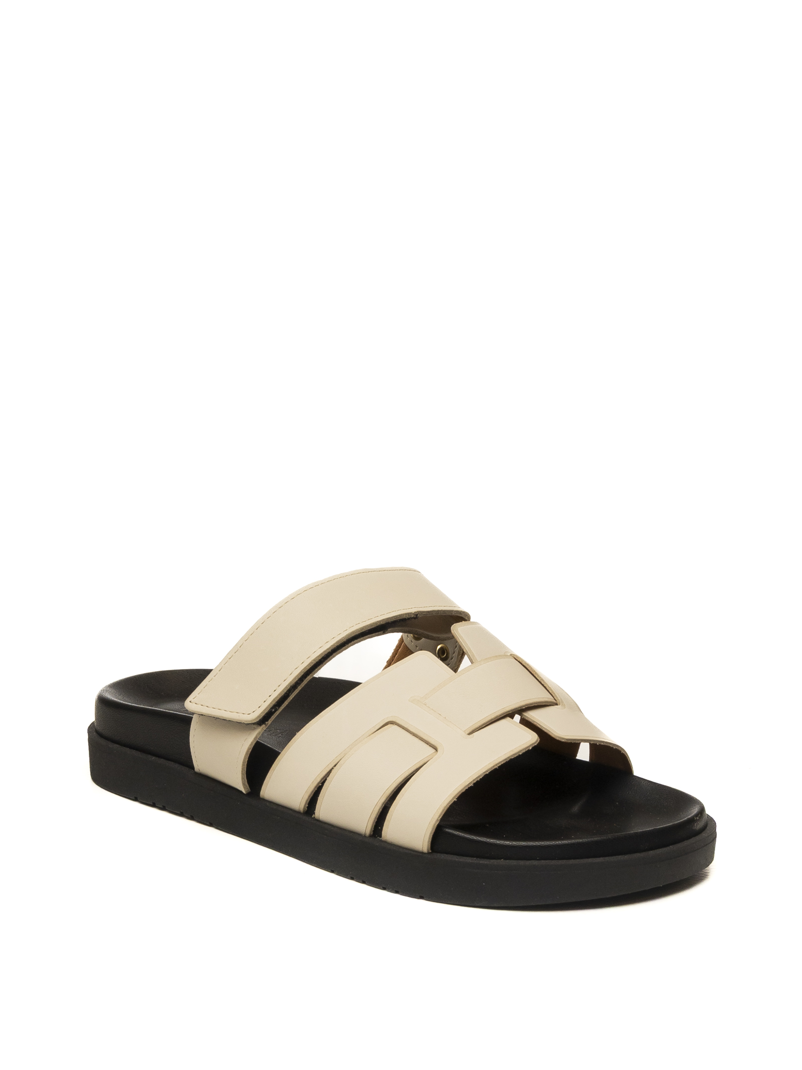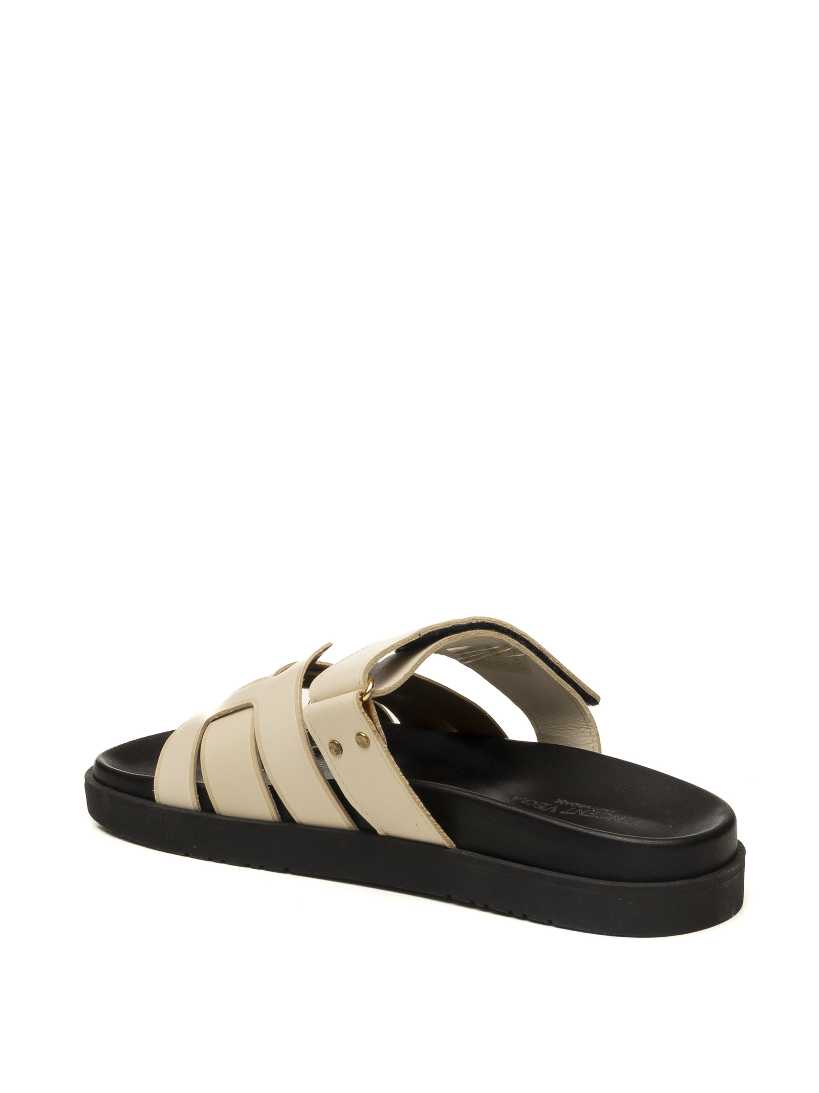 Sandalo Vincent Vega Assia, un inno alla raffinatezza del Made in Italy e alla maestria calzaturiera artigianale. Questo sandalo si distingue per la sua tomaia in pregiata pelle di vitello color avorio, selezionata per la sua morbidezza superiore e una tonalità naturale che esalta il design a doppia fascia geometrica. L'artigianalità emerge nella precisione delle rifiniture e nella scelta di materiali nobili che assicurano comfort e durata nel tempo. Il modello è completato da un sottopiede in vera pelle per un benessere costante del piede e da un fondo in gomma nero a contrasto, flessibile e leggero, progettato per offrire un'ottima ammortizzazione e una calzata sicura in ogni momento della giornata.