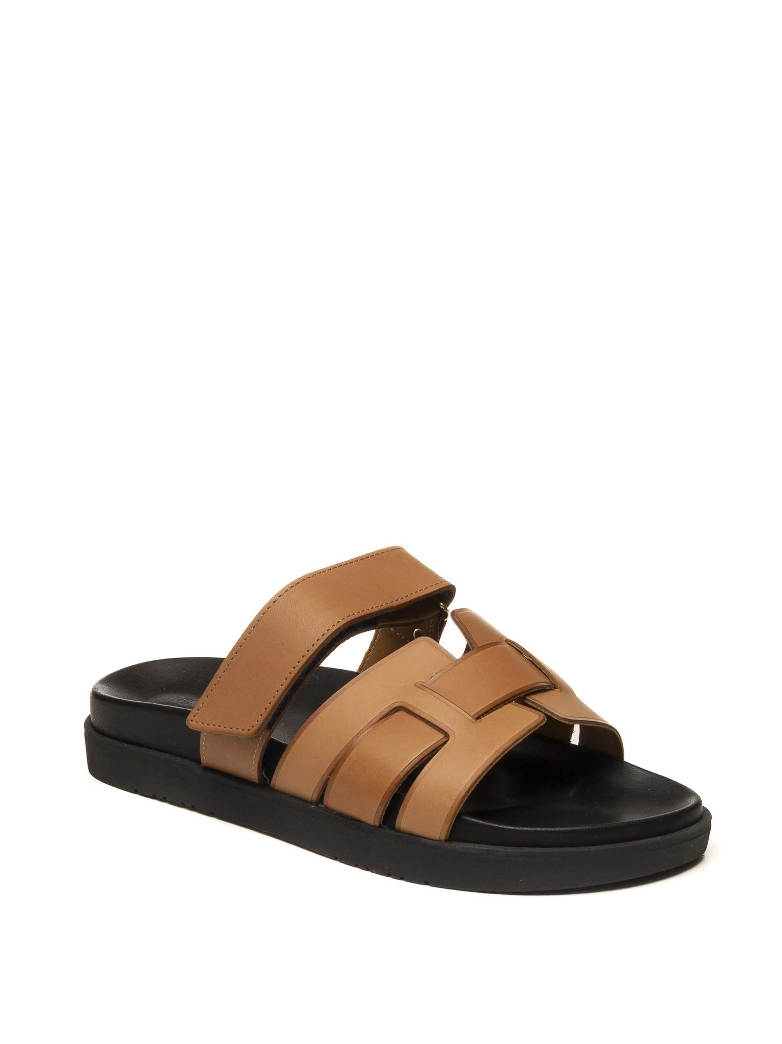 Sandalo Vincent Vega Assia, un inno alla raffinatezza del Made in Italy e alla maestria calzaturiera artigianale. Questo sandalo si distingue per la sua tomaia in pregiata pelle di vitello color cuoio, selezionata per la sua morbidezza superiore e una tonalità calda e naturale che esalta il design a doppia fascia geometrica. L'artigianalità emerge nella precisione delle rifiniture e nella scelta di materiali nobili che assicurano comfort e durata nel tempo. Il modello è completato da un sottopiede in vera pelle per un benessere costante del piede e da un fondo in gomma nero a contrasto, flessibile e leggero, progettato per offrire un'ottima ammortizzazione e una calzata sicura in ogni momento della giornata.