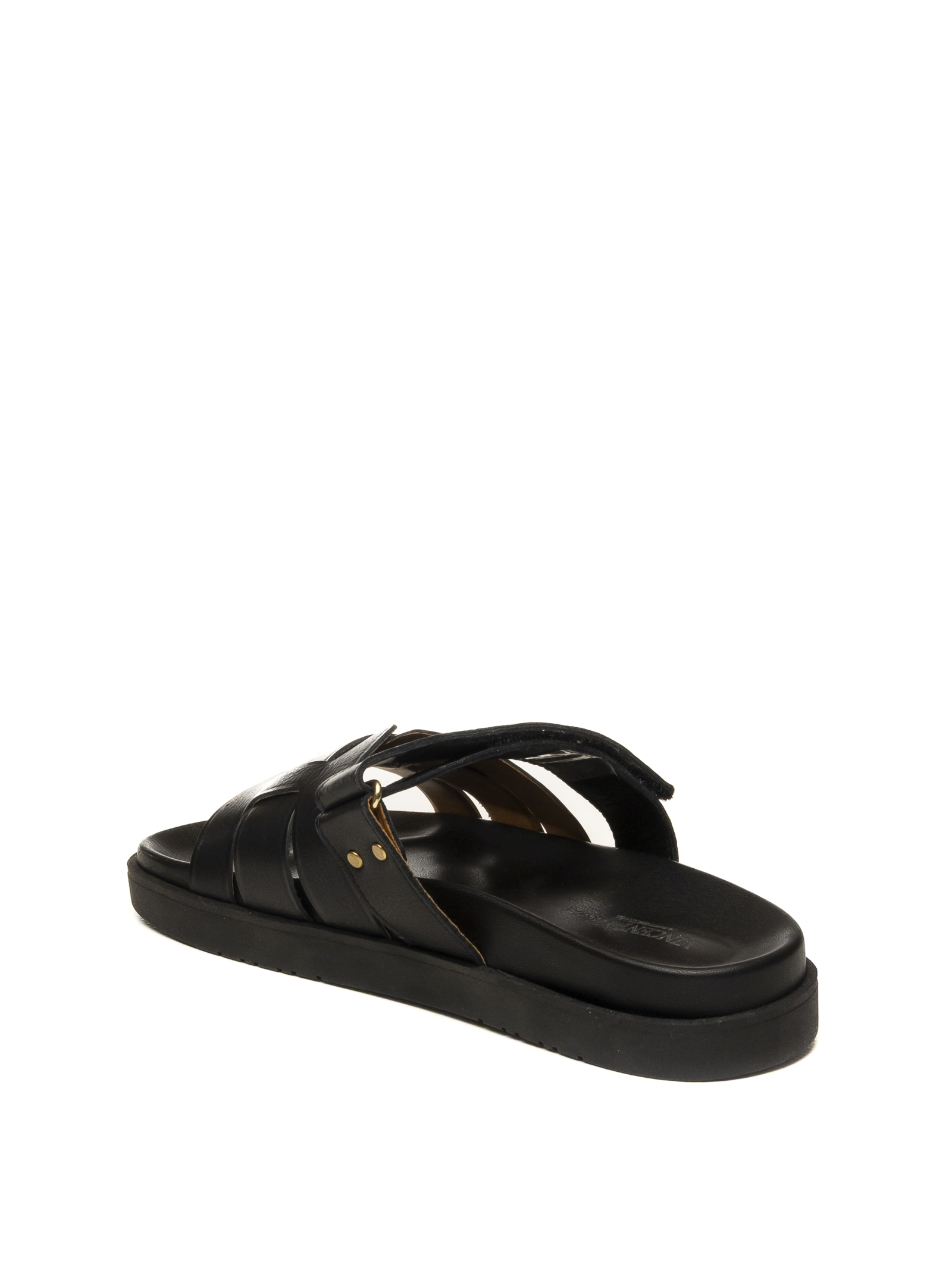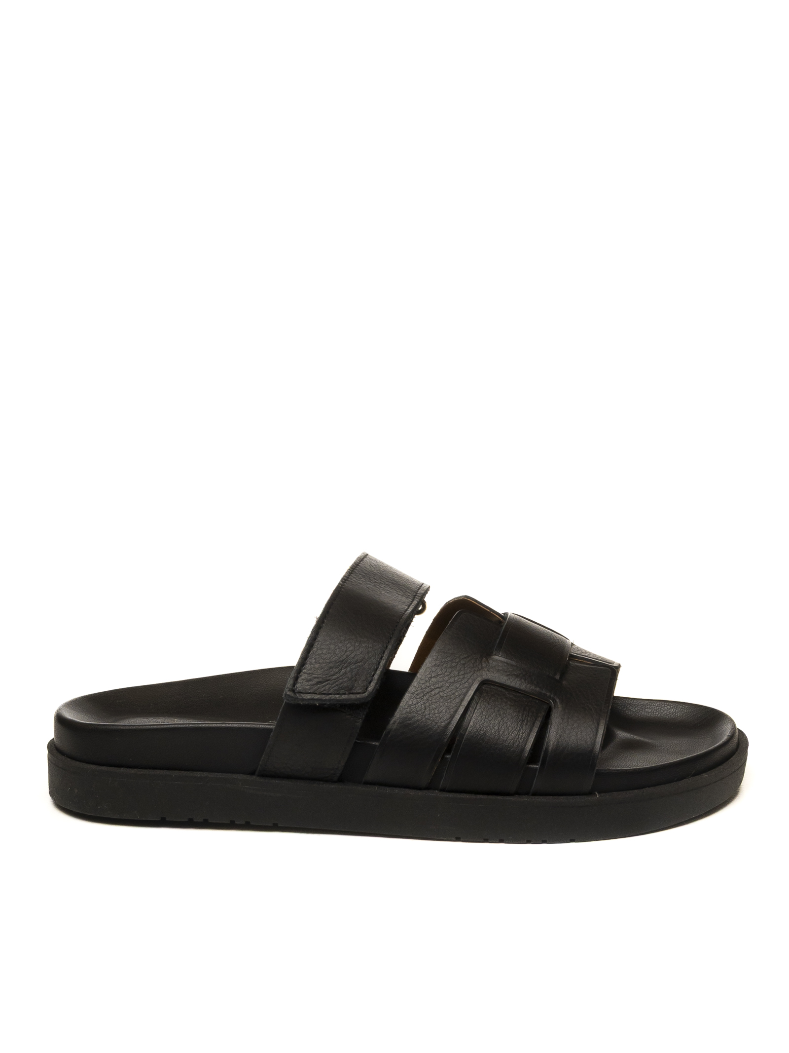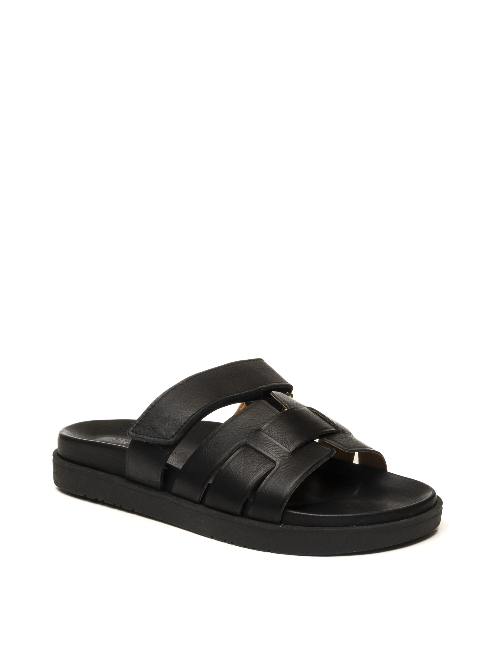 Sandalo Vincent Vega Assia, un inno alla raffinatezza del Made in Italy e alla maestria calzaturiera artigianale. Questo sandalo si distingue per la sua tomaia in pregiata pelle di vitello nera, selezionata per la sua morbidezza superiore e una lucentezza naturale che esalta il design a doppia fascia geometrica. L'artigianalità emerge nella precisione delle rifiniture e nella scelta di materiali nobili che assicurano comfort e durata nel tempo. Il modello è completato da un sottopiede in vera pelle per un benessere costante del piede e da un fondo in gomma tono su tono, flessibile e leggero, progettato per offrire un'ottima ammortizzazione e una calzata sicura in ogni momento della giornata.