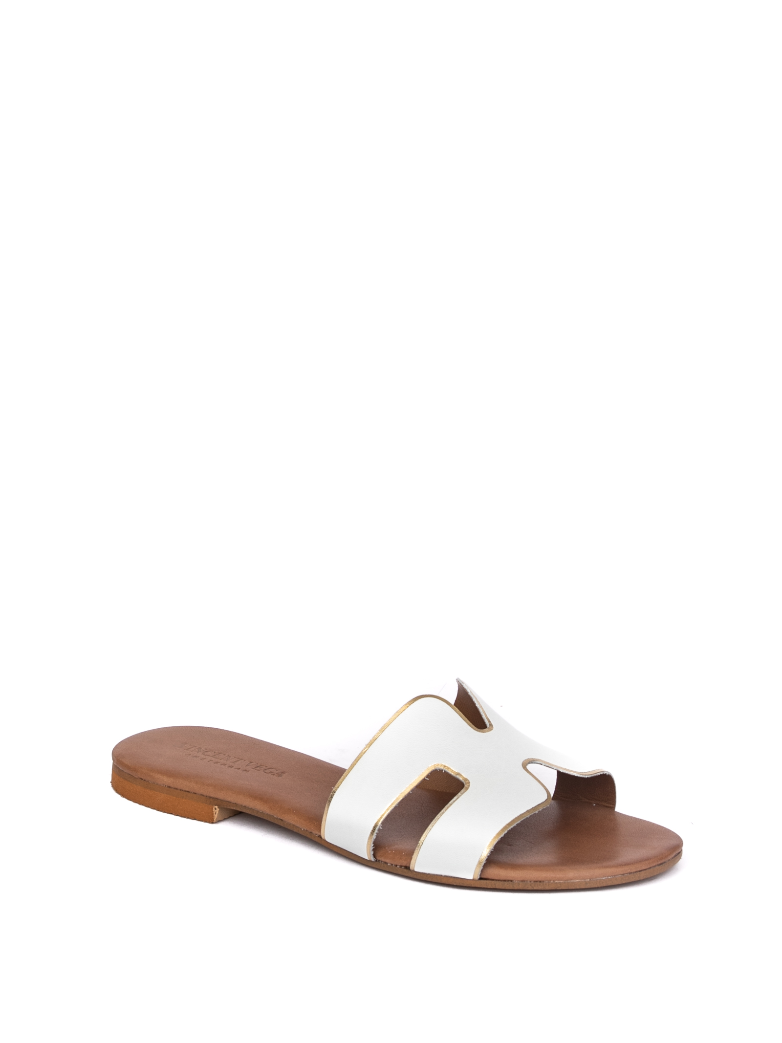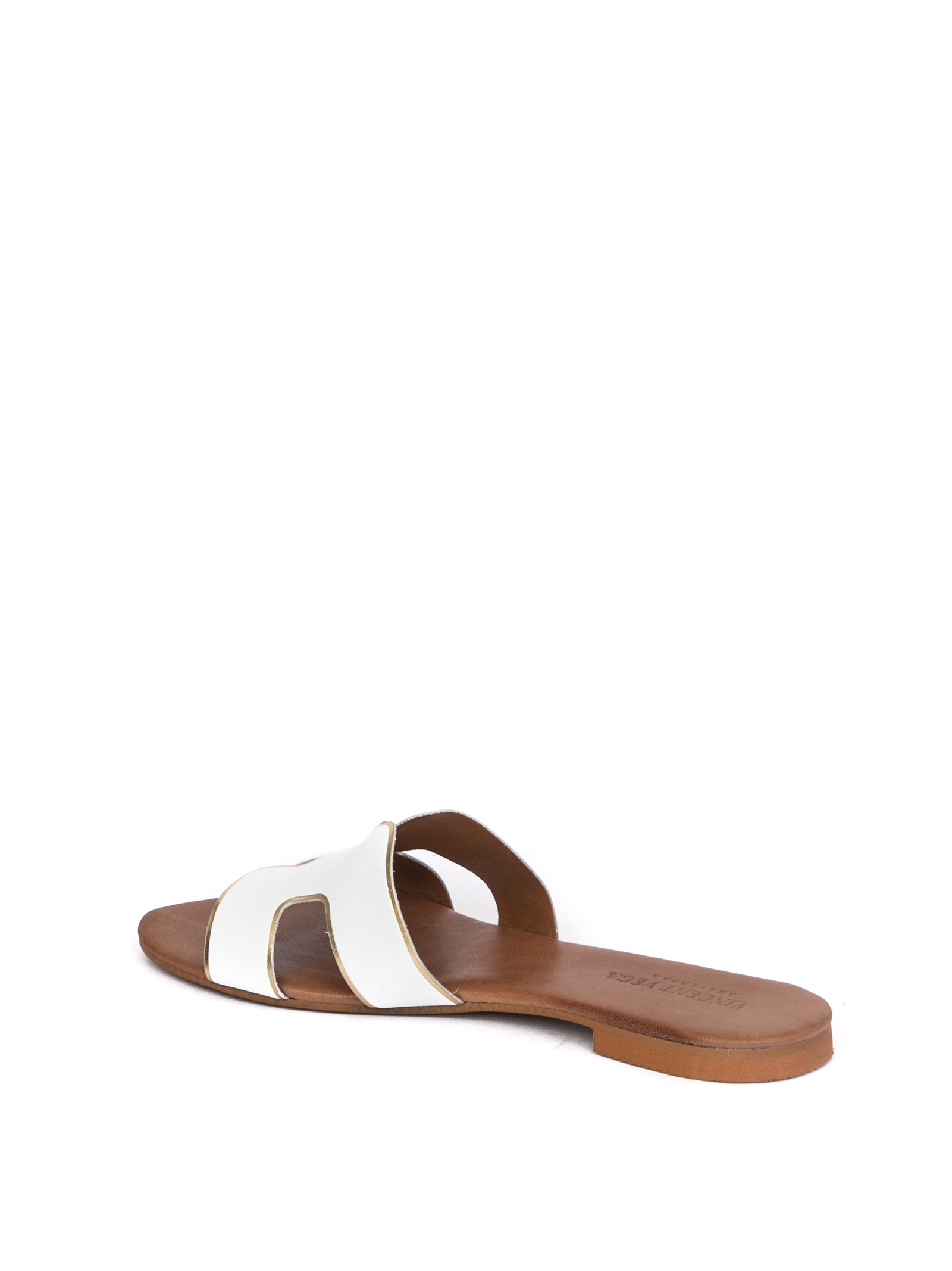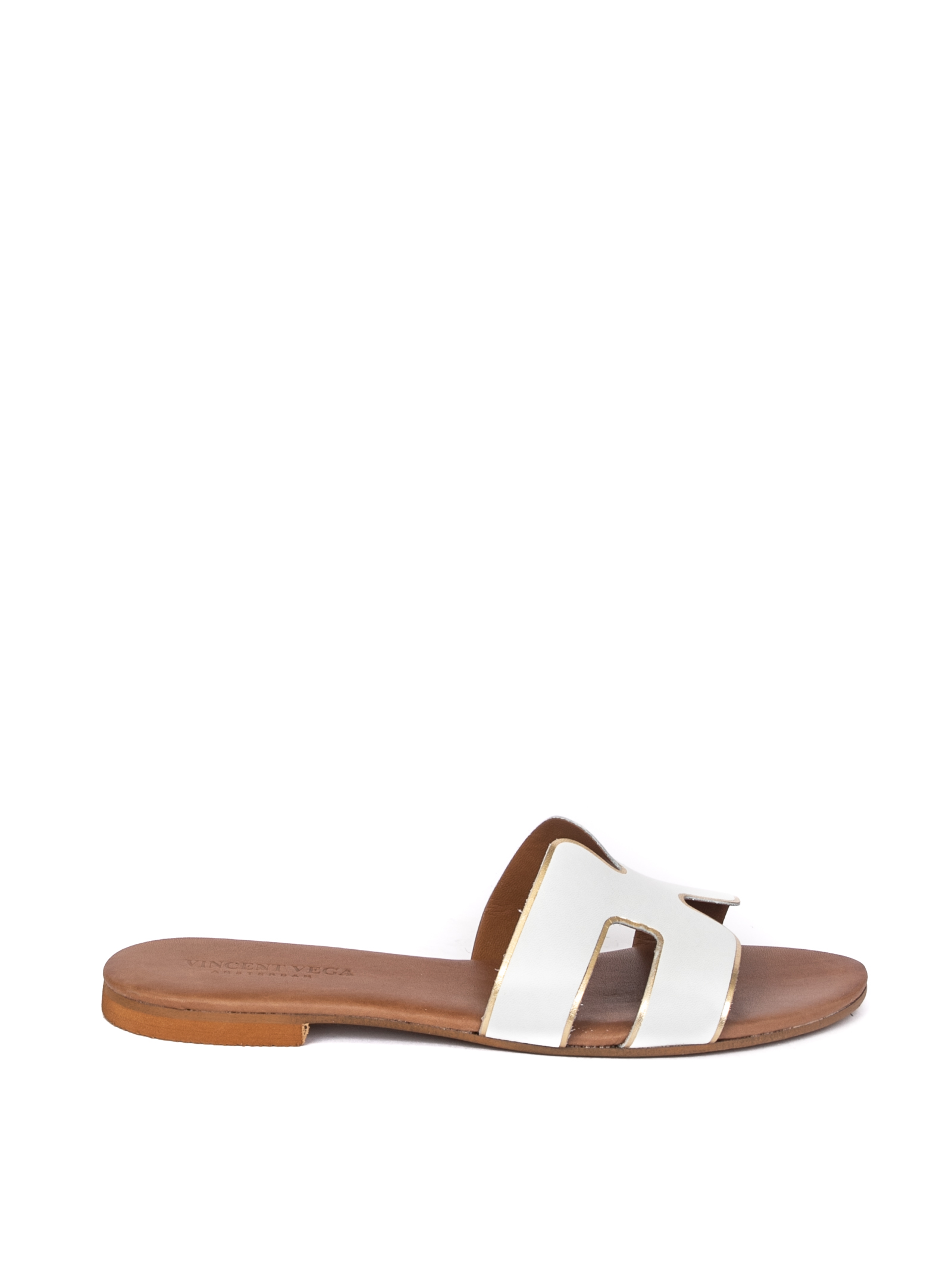 Sandalo flat in pelle. Motivo traforato. Fondo in vero cuoio. Made in Italy.