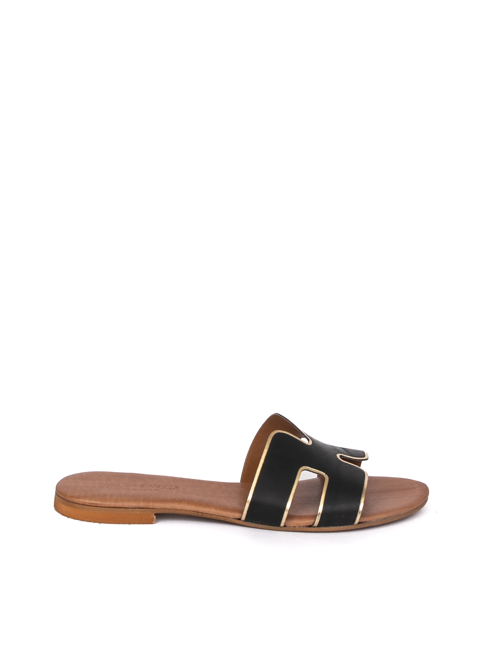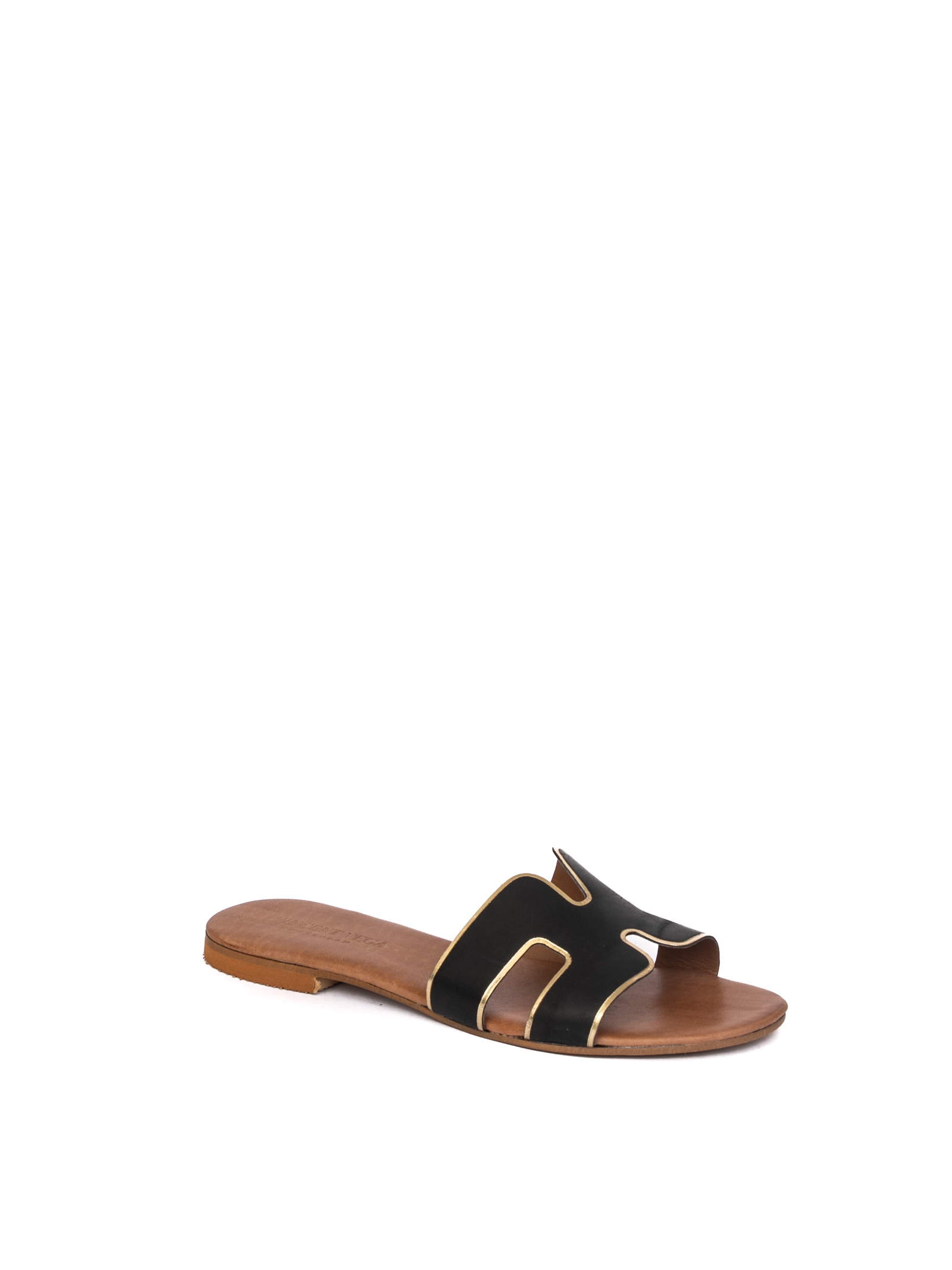 Sandalo flat in pelle. Motivo traforato. Fondo in vero cuoio. Made in Italy.