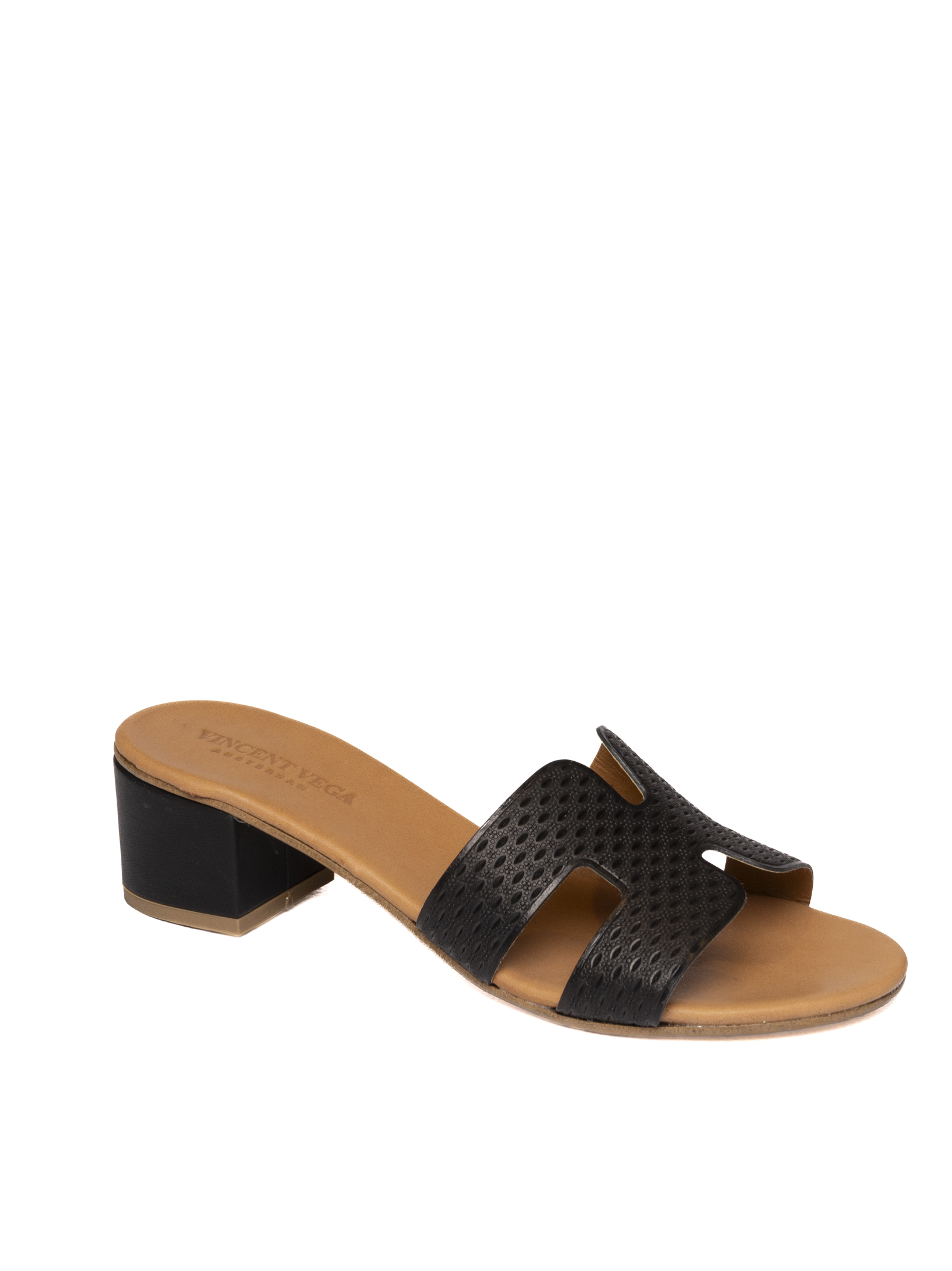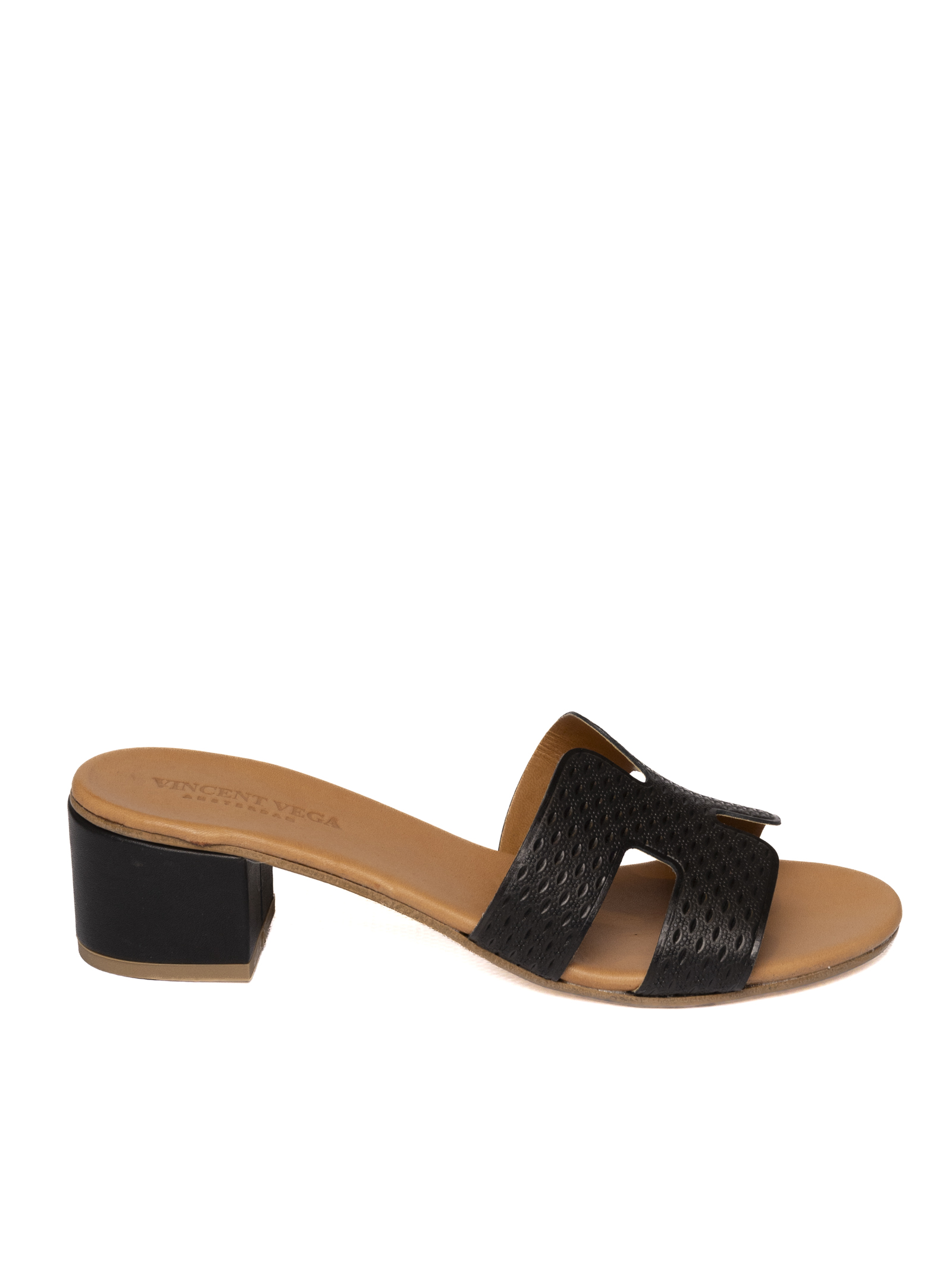 Sandalo in pelle. Scalzato. Sottopiede in pelle. Tacco rivestito in pelle. Altezza tacco 40mm. Made in Italy