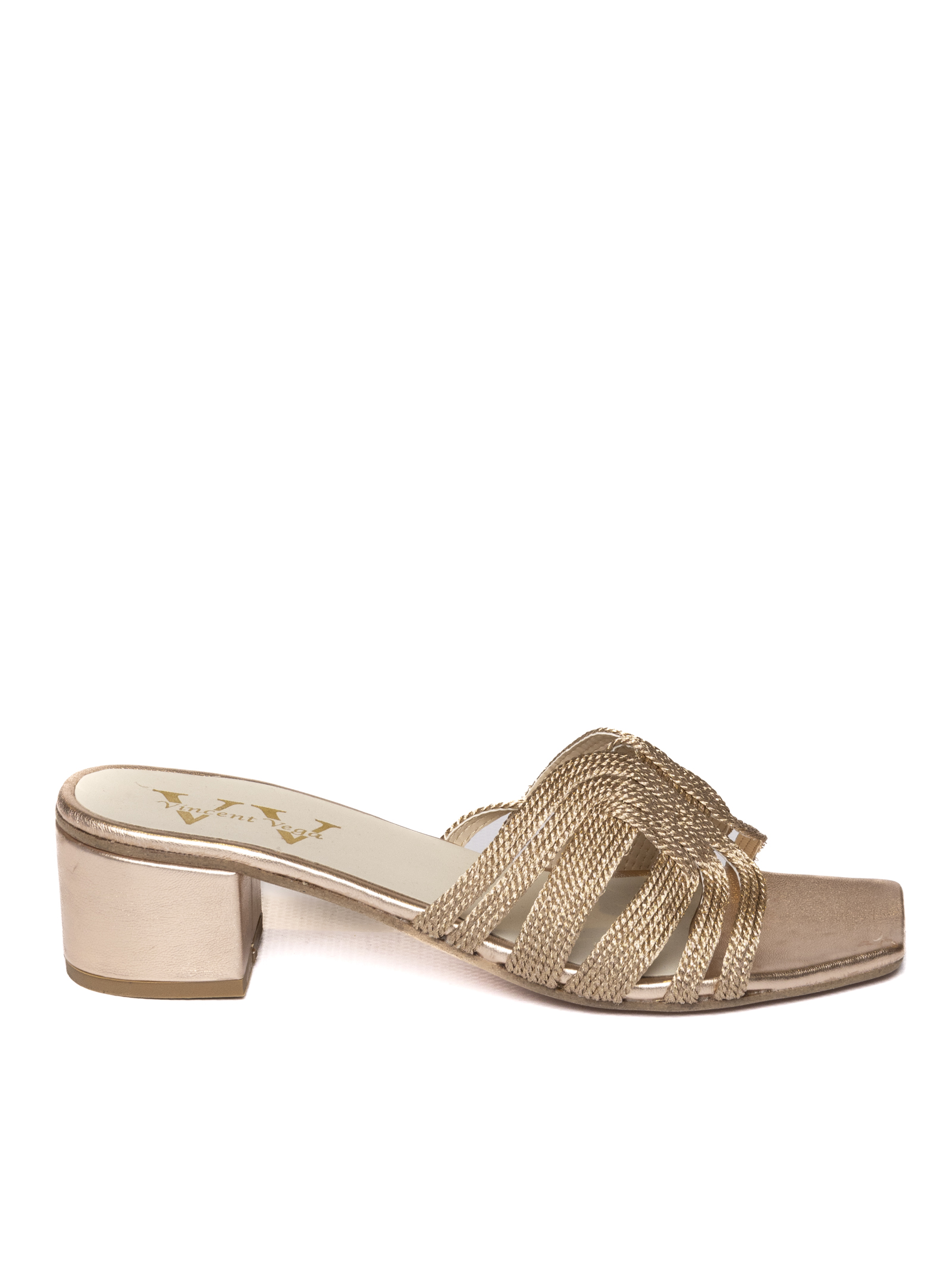 Sandalo in rafia. Sottopiede in pelle. Scalzato. Tacco rivestito in pelle laminata. Altezza tacco 40mm. Made in Italy