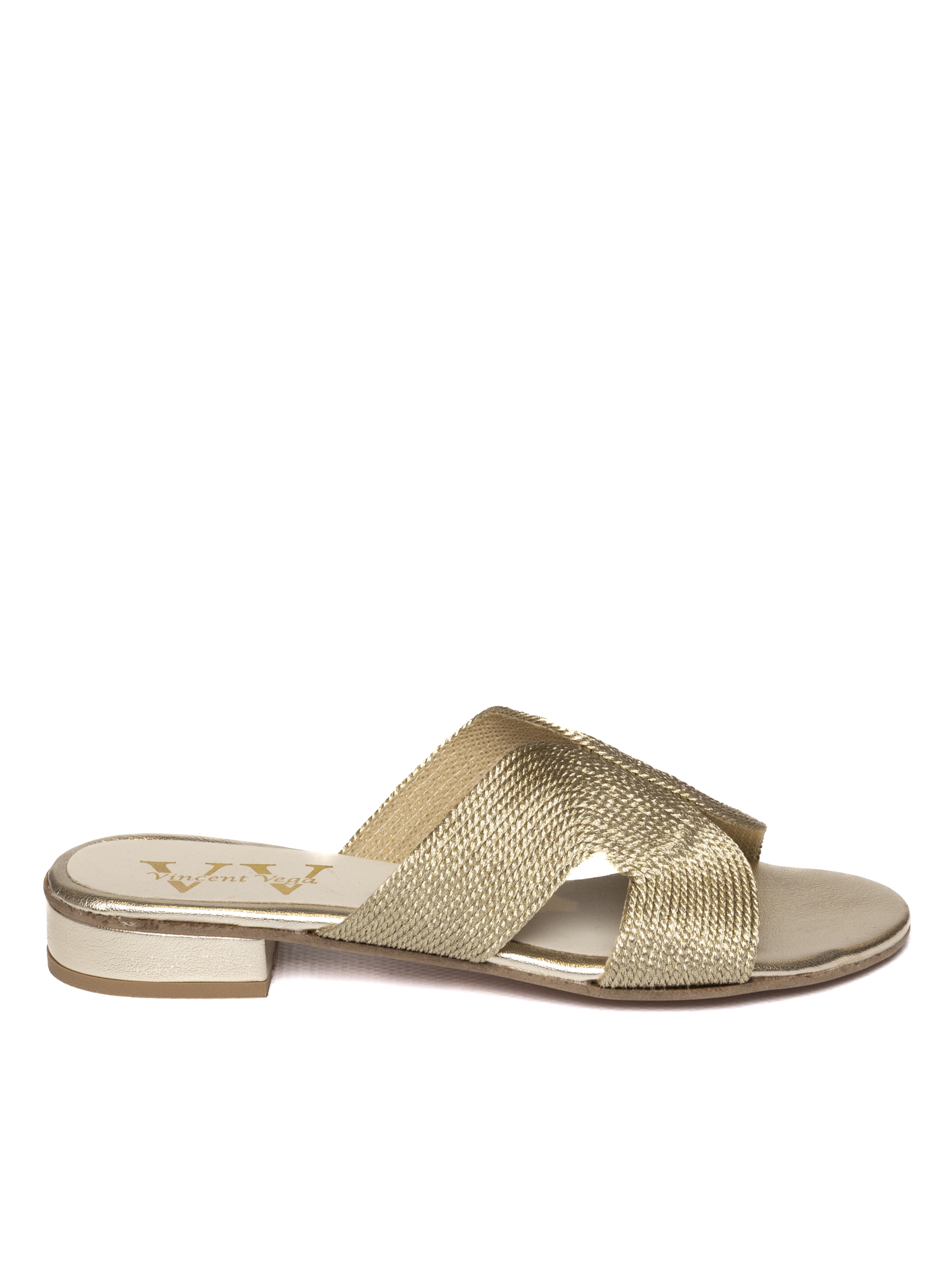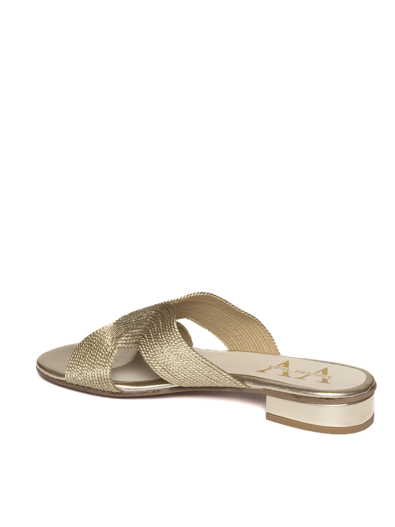 Sandalo in rafia. Sottopiede in pelle. Tacco rivestito in pelle laminata. Altezza tacco 20mm. Made in Italy